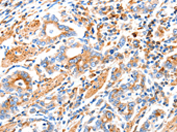 The image is immunohistochemistry of paraffin-embedded Human gasrtic cancer tissue using P04091(MAP2K2 Antibody) at dilution 1/100. (Original magnification: ×200) |