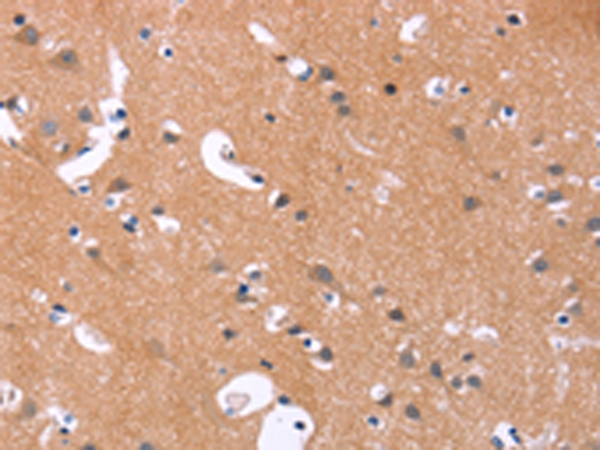 The image is immunohistochemistry of paraffin-embedded Human brain tissue using P04308(MAPK11 Antibody) at dilution 1/30. (Original magnification: ×200) |