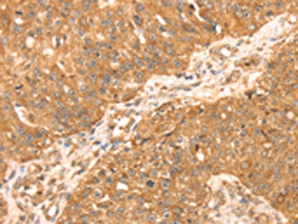The image is immunohistochemistry of paraffin-embedded Human breast cancer tissue using P07278(MAPK7 Antibody) at dilution 1/35. (Original magnification: ×200) |