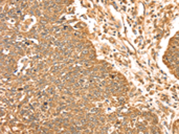 The image is immunohistochemistry of paraffin-embedded Human lung cancer tissue using P07278(MAPK7 Antibody) at dilution 1/35. (Original magnification: ×200) |