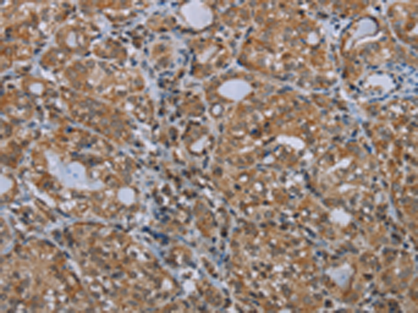 The image is immunohistochemistry of paraffin-embedded Human thyroid cancer tissue using P11928(MARK1 Antibody) at dilution 1/30. (Original magnification: ×200) |