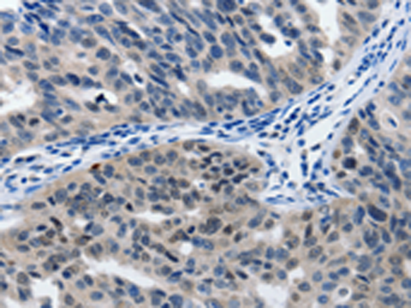 The image is immunohistochemistry of paraffin-embedded Human ovarian cancer tissue using P11012(MATN1 Antibody) at dilution 1/60. (Original magnification: ×200) |