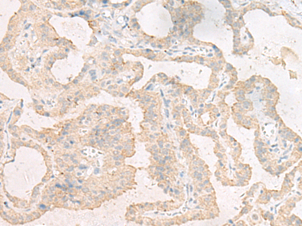 The image is immunohistochemistry of paraffin-embedded Human thyroid cancer tissue using P13461(MBOAT4 Antibody) at dilution 1/30. (Original magnification: ×200) |