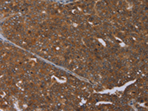 The image is immunohistochemistry of paraffin-embedded Human ovarian cancer tissue using P11934(MCHR1 Antibody) at dilution 1/25. (Original magnification: ×200) |