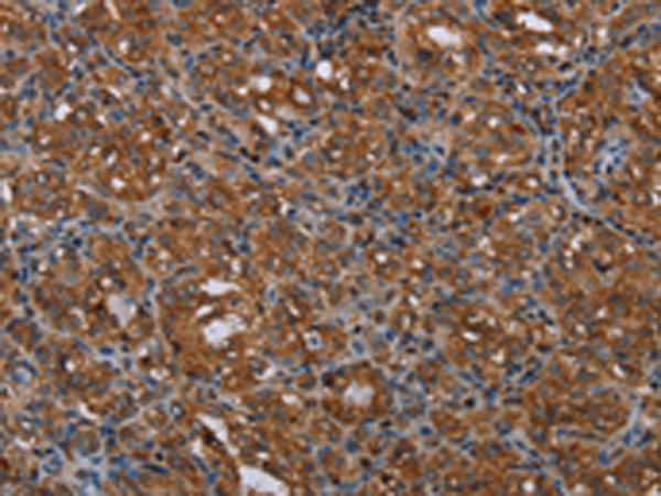 The image is immunohistochemistry of paraffin-embedded Human thyroid cancer tissue using P11934(MCHR1 Antibody) at dilution 1/25. (Original magnification: ×200) |