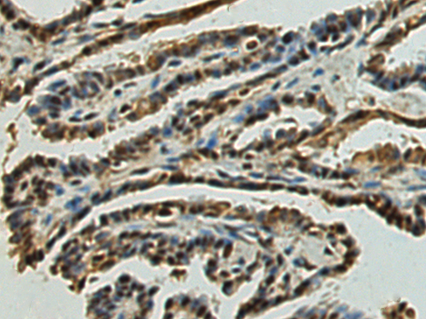 The image is immunohistochemistry of paraffin-embedded Human thyroid cancer tissue using P02841(MED28 Antibody) at dilution 1/240. (Original magnification: ×200) |