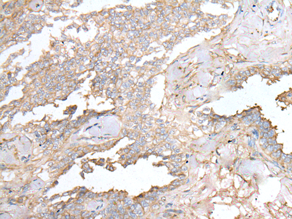 The image is immunohistochemistry of paraffin-embedded Human ovarian cancer tissue using P05915(MEN1 Antibody) at dilution 1/20. (Original magnification: ×200) |