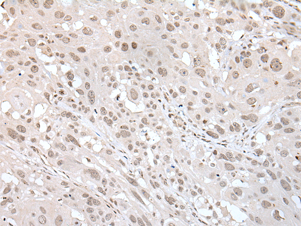 The image is immunohistochemistry of paraffin-embedded Human esophagus cancer tissue using P12786(MEN1 Antibody) at dilution 1/25. (Original magnification: ×200) |