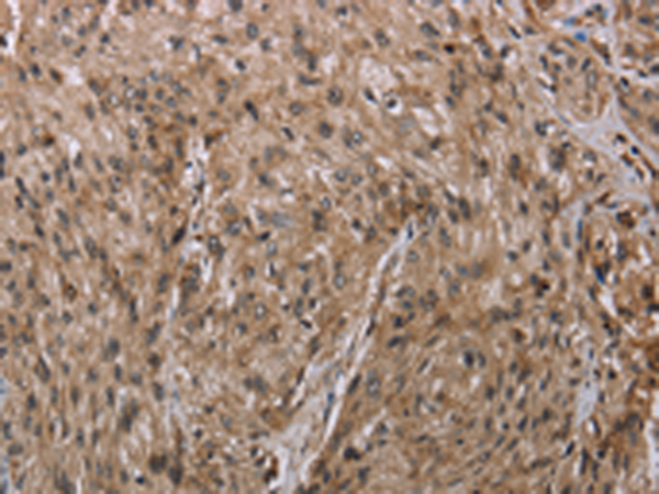 The image is immunohistochemistry of paraffin-embedded Human esophagus cancer tissue using P11938(MFF Antibody) at dilution 1/20. (Original magnification: ×200) |