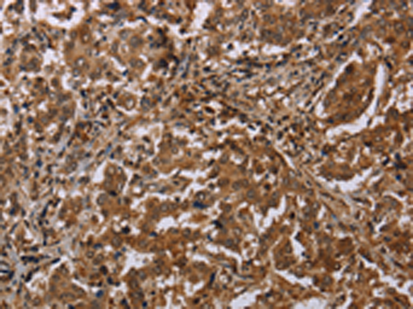 The image is immunohistochemistry of paraffin-embedded Human liver cancer tissue using P11938(MFF Antibody) at dilution 1/20. (Original magnification: ×200) |