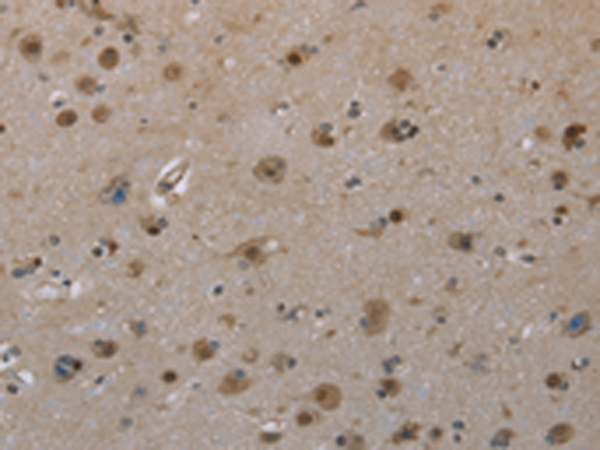 The image is immunohistochemistry of paraffin-embedded Human brain tissue using P11954(MGLL Antibody) at dilution 1/40. (Original magnification: ×200) |