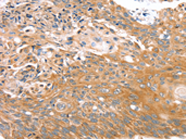 The image is immunohistochemistry of paraffin-embedded Human esophagus cancer tissue using P12254(MGST1 Antibody) at dilution 1/40. (Original magnification: ×200) |