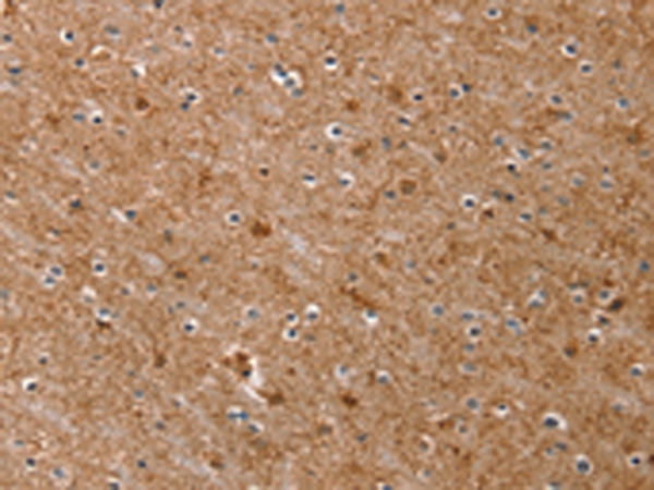The image is immunohistochemistry of paraffin-embedded Human brain tissue using P05372(MGST1 Antibody) at dilution 1/35. (Original magnification: ×200) |