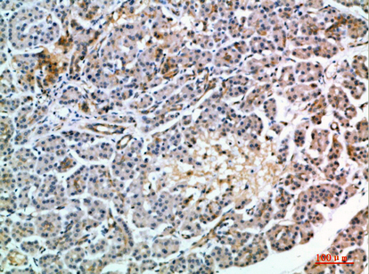 Immunohistochemistry analysis of paraffin-embedded Human pancreas using MIA2 antibody.High-pressure and temperature Sodium Citrate pH 6.0 was used for antigen retrieval. |