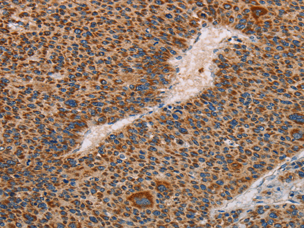 The image is immunohistochemistry of paraffin-embedded Human liver cancer tissue using P07007(MMP1 Antibody) at dilution 1/60. (Original magnification: ×200) |