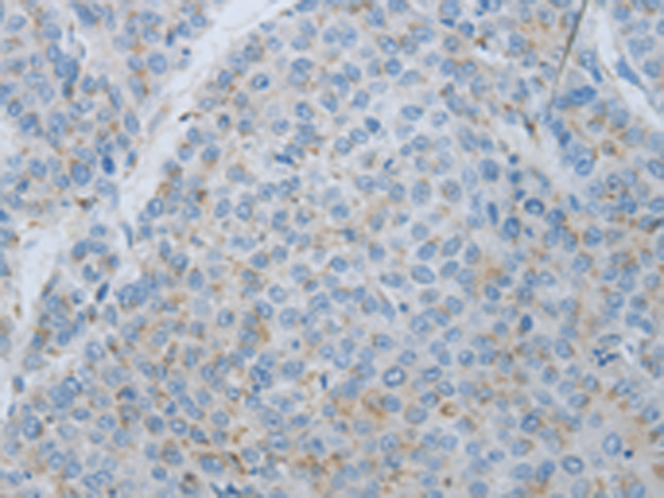 The image is immunohistochemistry of paraffin-embedded Human liver cancer tissue using P11033(MMP25 Antibody) at dilution 1/80. (Original magnification: ×200) |