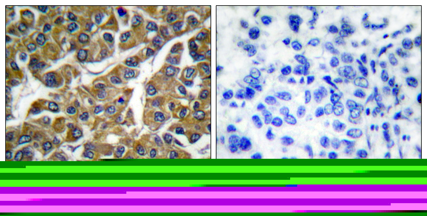 Immunohistochemistry analysis of paraffin-embedded Human breast carcinoma tissue using MMP3 antibody. High-pressure and temperature Sodium Citrate pH 6.0 was used for antigen retrieval. Sample with blocking peptide on the right. |