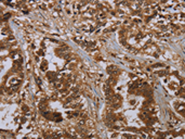 The image is immunohistochemistry of paraffin-embedded Human liver cancer tissue using P05063(MOB1A Antibody) at dilution 1/20. (Original magnification: ×200) |