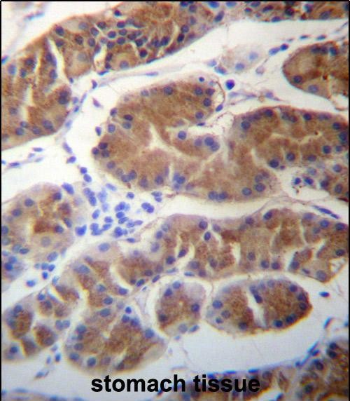 MORN1 Antibody (N-term) (Cat. #P31273)immunohistochemistry analysis in formalin fixed and paraffin embedded human stomach tissue followed by peroxidase conjugation of the secondary antibody and DAB staining.This data demonstrates the use of MORN1 Antibody (N-term) for immunohistochemistry. Clinical relevance has not been evaluated. |