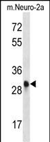 Mouse Cdk1 Antibody (C-term) (Cat. #P32661) western blot analysis in mouse Neuro-2a cell line lysates (35ug/lane).This demonstrates the Cdk1 antibody detected the Cdk1 protein (arrow). |