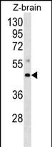 Mouse Map2k4 Antibody (C-term) (Cat. #P31557) western blot analysis in zebra fish brain tissue lysates (35ug/lane).This demonstrates the Mouse Map2k4 antibody detected the Mouse Map2k4 protein (arrow). |