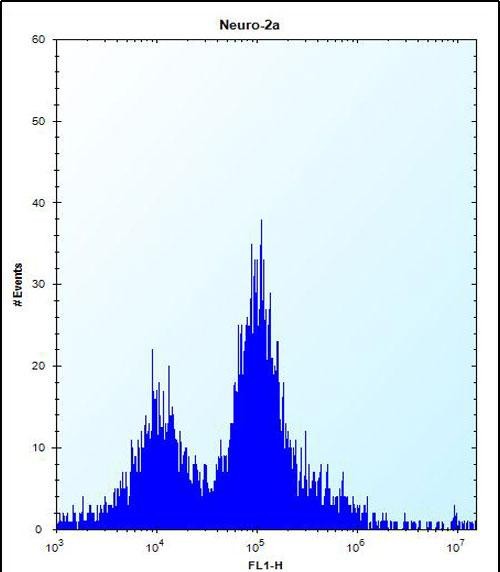 Mouse Plk3 Antibody (N-term) (Cat. #P31515) flow cytometric analysis of Neuro-2a cells (right histogram) compared to a negative control cell (left histogram).FITC-conjugated donkey-anti-rabbit secondary antibodies were used for the analysis. |