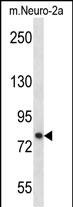 Mouse Prkca Antibody (N-term) (Cat. #P31434) western blot analysis in mouse Neuro-2a cell line lysates (35ug/lane).This demonstrates the Prkca antibody detected the Prkca protein (arrow). |