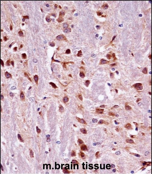 Mouse Prkca Antibody (N-term) (P31434)immunohistochemistry analysis in formalin fixed and paraffin embedded mouse brain tissue followed by peroxidase conjugation of the secondary antibody and DAB staining.This data demonstrates the use of Mouse Prkca Antibody (N-term) for immunohistochemistry. Clinical relevance has not been evaluated. |
