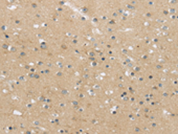 The image is immunohistochemistry of paraffin-embedded Human brain tissue using P12378(MPP6 Antibody) at dilution 1/25. (Original magnification: ×200) |