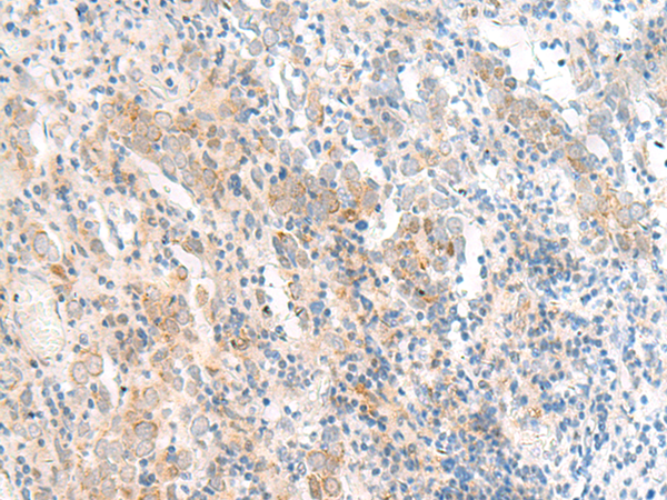 The image is immunohistochemistry of paraffin-embedded Human esophagus cancer tissue using P03007(MRPL50 Antibody) at dilution 1/35. (Original magnification: ×200) |