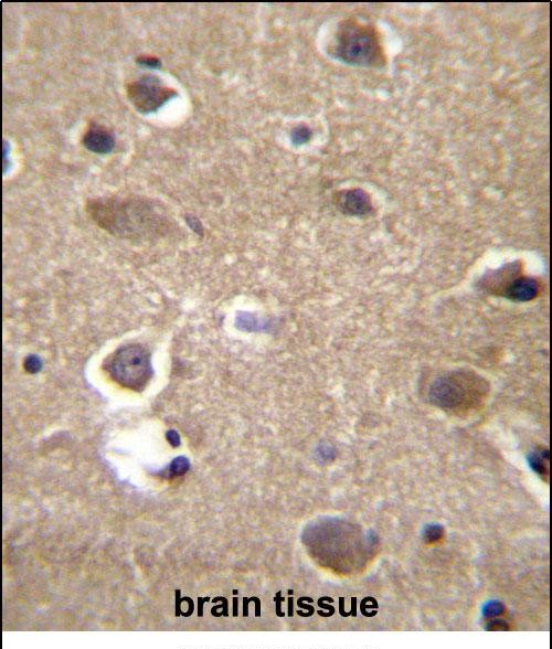 MRPL9 Antibody (N-term) (Cat. #P31207)immunohistochemistry analysis in formalin fixed and paraffin embedded human brain tissue followed by peroxidase conjugation of the secondary antibody and DAB staining.This data demonstrates the use of MRPL9 Antibody (N-term) for immunohistochemistry. Clinical relevance has not been evaluated. |