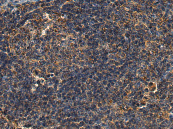 The image is immunohistochemistry of paraffin-embedded Human tonsil tissue using P03427(MRPS31 Antibody) at dilution 1/140. (Original magnification: ×200) |