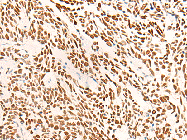 The image is immunohistochemistry of paraffin-embedded Human lung cancer tissue using P06329(MSH2 Antibody) at dilution 1/20. (Original magnification: ×200) |