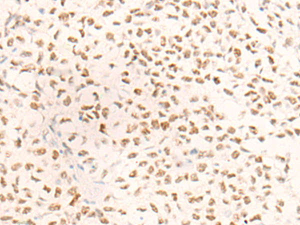 The image is immunohistochemistry of paraffin-embedded Human ovarian cancer tissue using P06329(MSH2 Antibody) at dilution 1/20. (Original magnification: ×200) |