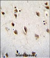 MSI1 Antibody (N-term) (Cat. #P31022)immunohistochemistry analysis in formalin fixed and paraffin embedded human brain tissue followed by peroxidase conjugation of the secondary antibody and DAB staining.This data demonstrates the use of MSI1 Antibody (N-term) for immunohistochemistry. Clinical relevance has not been evaluated. |