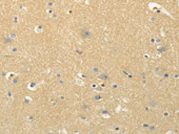 The image is immunohistochemistry of paraffin-embedded Human brain tissue using P05485(MSI1 Antibody) at dilution 1/30. (Original magnification: ×200) |