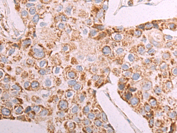 The image is immunohistochemistry of paraffin-embedded Human breast cancer tissue using P03701(MT-CO2 Antibody) at dilution 1/60. (Original magnification: ×200) |