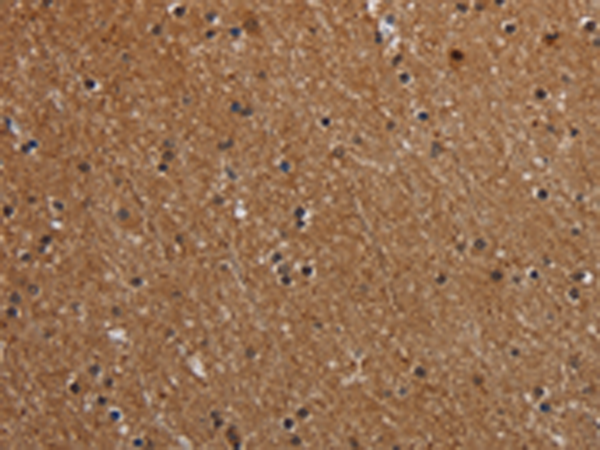 The image is immunohistochemistry of paraffin-embedded Human brain tissue using P05070(MT-ND1 Antibody) at dilution 1/50. (Original magnification: ×200) |