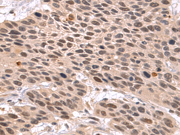 The image is immunohistochemistry of paraffin-embedded Human esophagus cancer tissue using P13782(MXD4 Antibody) at dilution 1/50. (Original magnification: ×200) |