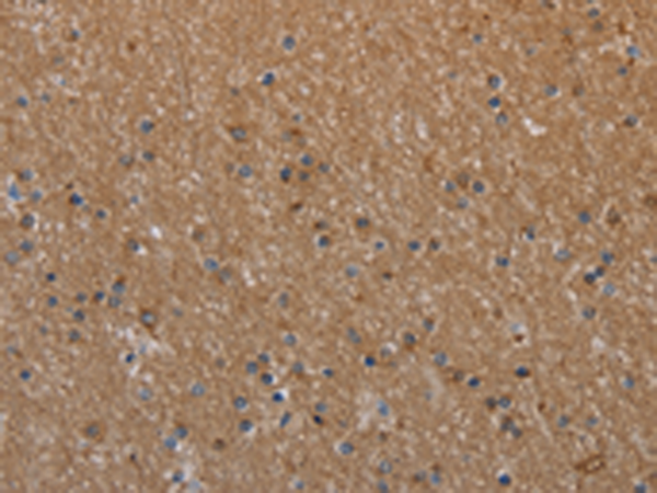 The image is immunohistochemistry of paraffin-embedded Human brain tissue using P05082(NAA25 Antibody) at dilution 1/40. (Original magnification: ×200) |