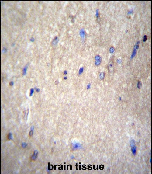 NAE1 Antibody (Center) (Cat. #P31213)immunohistochemistry analysis in formalin fixed and paraffin embedded human brain tissue followed by peroxidase conjugation of the secondary antibody and DAB staining.This data demonstrates the use of NAE1 Antibody (Center) for immunohistochemistry. Clinical relevance has not been evaluated. |
