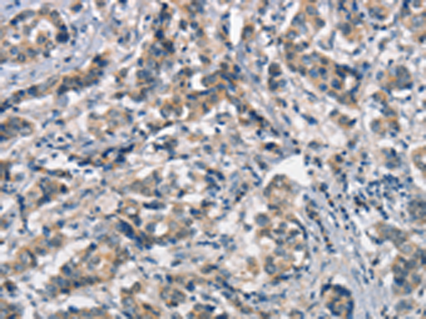 The image is immunohistochemistry of paraffin-embedded Human breast cancer tissue using P04289(NAXE Antibody) at dilution 1/15. (Original magnification: ×200) |