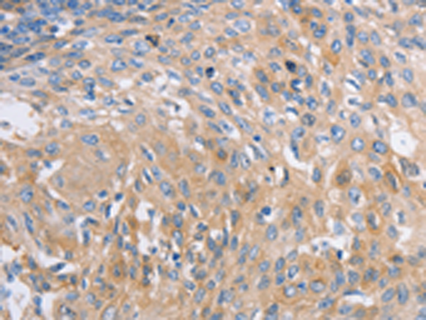 The image is immunohistochemistry of paraffin-embedded Human cervical cancer tissue using P04140(NBEA Antibody) at dilution 1/60. (Original magnification: ×200) |