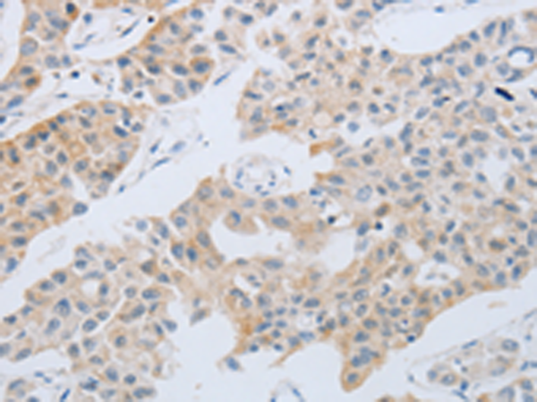 The image is immunohistochemistry of paraffin-embedded Human lung cancer tissue using P04134(NBN Antibody) at dilution 1/30. (Original magnification: ×200) |