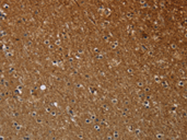The image is immunohistochemistry of paraffin-embedded Human brain tissue using P05083(NCKAP1 Antibody) at dilution 1/30. (Original magnification: ×200) |