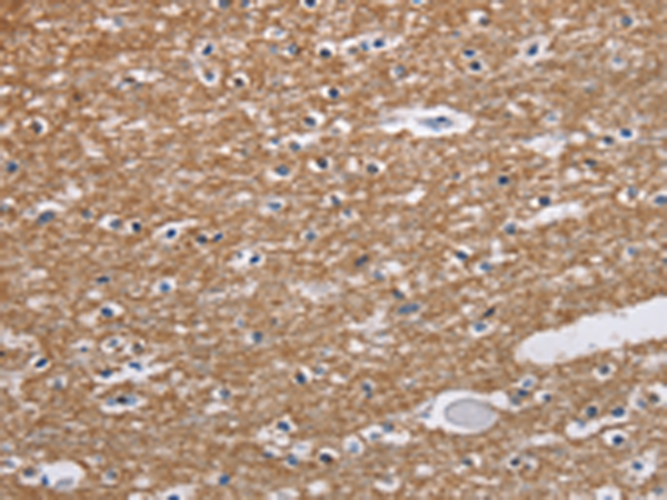 The image is immunohistochemistry of paraffin-embedded Human brain tissue using P04750(NCR2 Antibody) at dilution 1/60. (Original magnification: ×200) |