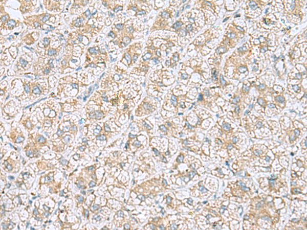 The image is immunohistochemistry of paraffin-embedded Human liver cancer tissue using P04371(NDRG4 Antibody) at dilution 1/45. (Original magnification: ×200) |