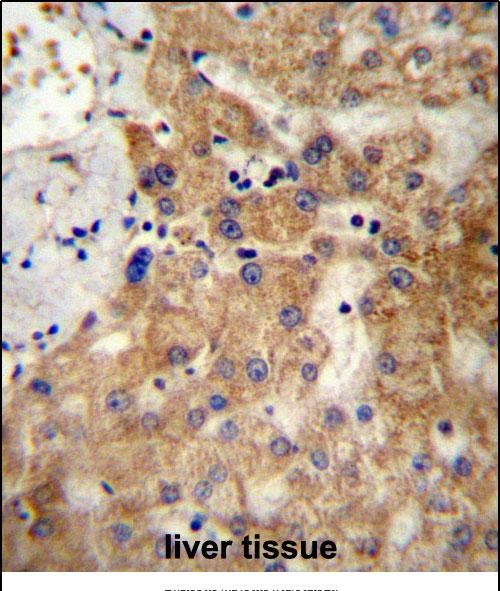 NDST1 Antibody (C-term) (Cat. #P31245)immunohistochemistry analysis in formalin fixed and paraffin embedded human liver tissue followed by peroxidase conjugation of the secondary antibody and DAB staining.This data demonstrates the use of NDST1 Antibody (C-term) for immunohistochemistry. Clinical relevance has not been evaluated. |