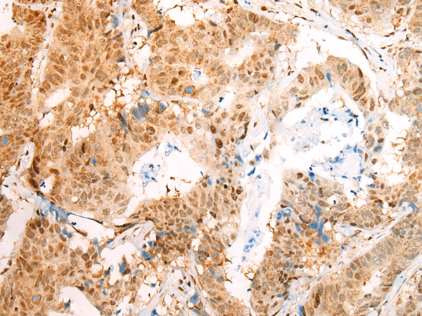 The image is immunohistochemistry of paraffin-embedded Human colorectal cancer tissue using P12547(NDUFB2 Antibody) at dilution 1/20. (Original magnification: ×200) |