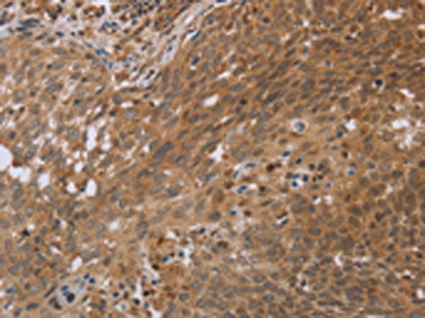 The image is immunohistochemistry of paraffin-embedded Human cervical cancer tissue using P05088(NDUFS2 Antibody) at dilution 1/35. (Original magnification: ×200) |